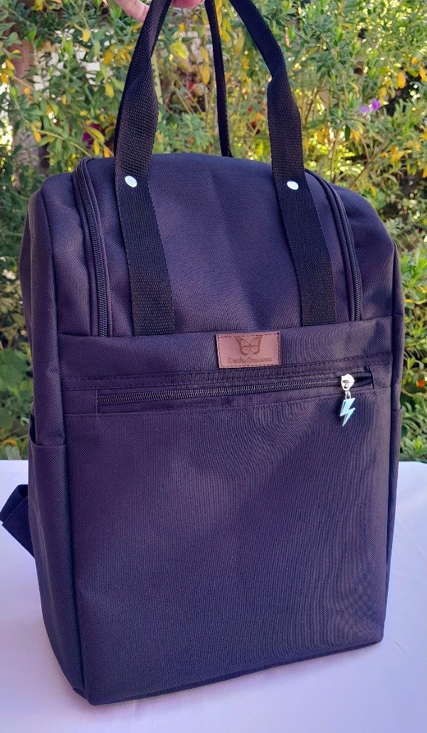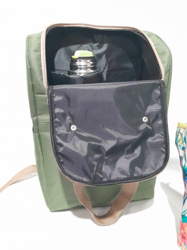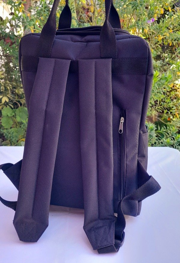 Mochila Matera. División interna para termo así no se tumba bolsillos exteriores. Se puede usar como bolso o mochila. Medidas aprox. 36 cm Alto x 26 cm ancho x14 cm prof.